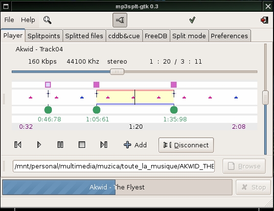 - MP3splt (mp3splt.sourceforge.net, paquetes mp3splt mp3splt-gtk): splitter para MP3 y OGG que permite extraer pistas de un álbum completo.